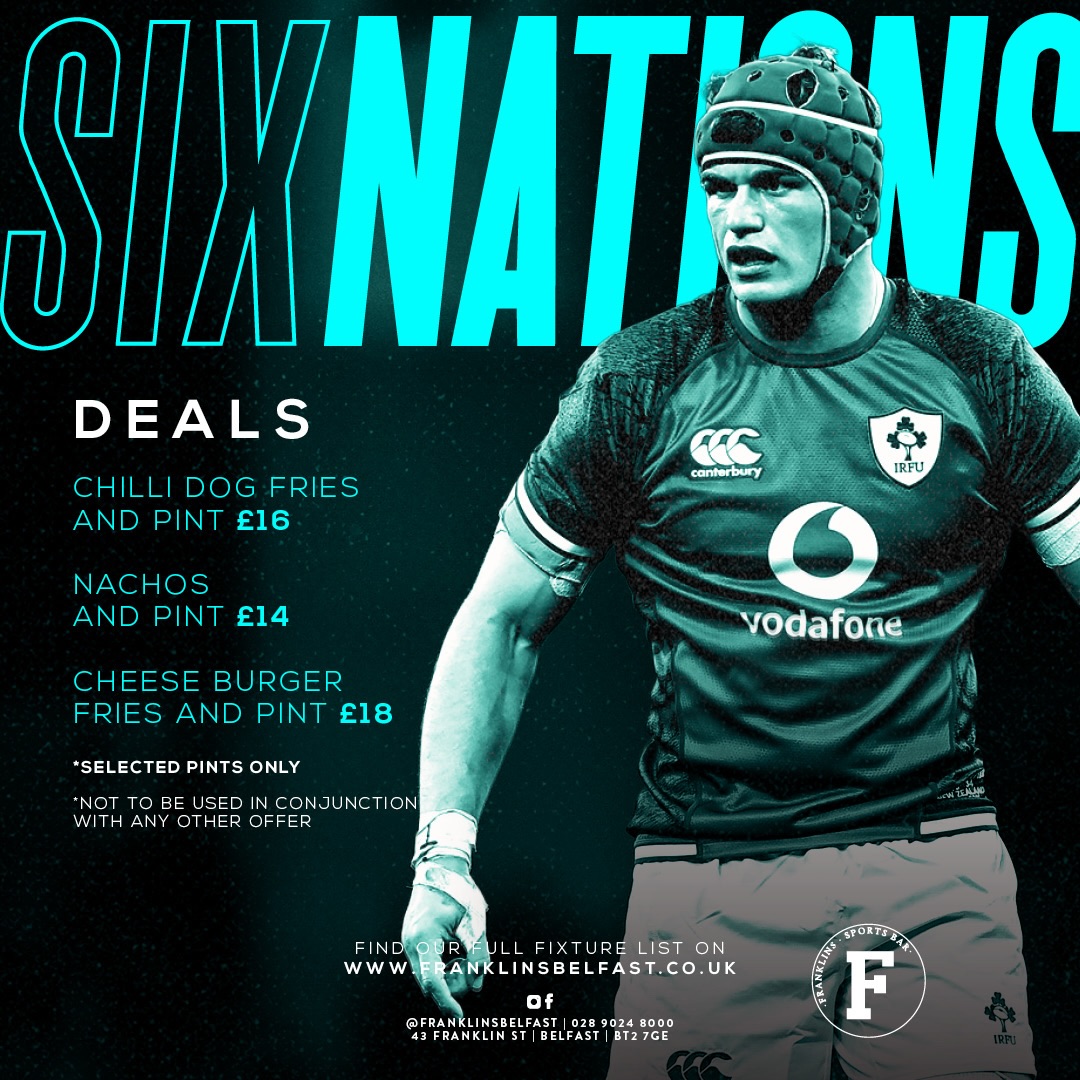 No need to go hungry (or thirsty) during the Six Nations with Franklins Sports Bar with these food specials, plus Guinness Line Outs for only £22